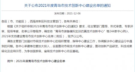 2022/01/052021年12月6日,青島市科技局公示了2021年度技術(shù)創(chuàng)新中心建設(shè)名單,青島正亞機(jī)械科技有限公司在眾多參選企業(yè)中脫穎而出,成功入選。